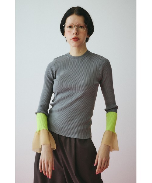 □ポイントHeRINらしいカラーリングがアクセントになるニットトップス。袖口のフレア部分は異素材となっているため、表面変化も楽しめる1枚。□ディテールピタッとしたシルエットですが、体のラインを拾い過ぎず、1枚で着用してもお洒落度アップ。ボトムスを選ばず着用できます。□スタイリングカジュアルな組み合わせもキレイめにも着こなせる1枚。フレアスリーブニットトップス[注意事項] ※画像の商品はサンプルです。実際の商品と仕様、加工が若干異なる場合があります。 ※画像の商品は光の照射や角度、お使いのモニター環境により、実物と色味が異なる場合がございます。 ※着用、お取り扱いの際は、アテンションタグをご確認ください。トップスとしてはもちろん、インナーとしても活躍する万能アイテム。【Herin.CYE/ヘリンドットサイ】女性を表す“HER”と“凛(RIN)”、“彩(CYE)”の造語。 “常にエレガントのある日常” いつもの着こなしにエレガントな要素を入れ絶妙なバランスや味付けを加える。 現代を生きる女性の毎日を最高にしたいから。女性である事の喜びを感じる服 HeRIN.CYEらしい、HeRIN.CYEにしかない色彩豊かなバリエーション、オリジナリティのある服を提案し続けます。