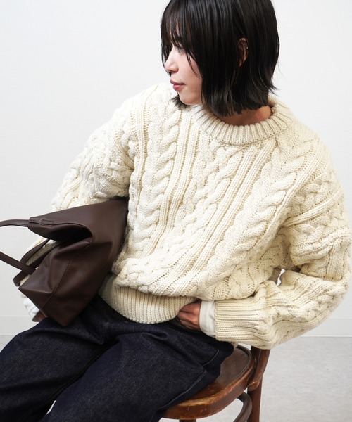 ■デザイン立体感のあるケーブル編みが目を惹く、存在感たっぷりのニットプルオーバー。太さの異なるケーブル柄を組み合わせることで、シンプルながらも奥行きのある表情に仕上げています。程よく厚みのある編み地で、しっかりとした着心地と暖かさを兼ね備えた一枚。コンパクトすぎずルーズすぎないバランスの取れたシルエットで、裾や袖口はリブ仕様にすることで全体をすっきりとまとめています。ナチュラルなカラーが、秋冬らしい柔らかな雰囲気を演出します。■スタイリングデニムやスラックスと合わせたベーシックなカジュアルスタイルはもちろん、レザー調アイテムやスエード小物と合わせることで季節感のあるコーディネートに。インナーにロンTやシャツをレイヤードし、袖口や裾から覗かせる着こなしもおすすめです。ブラウンやベージュ系のボトムスと相性が良く、gossaraらしい温かみのあるワントーンスタイルにも活躍。一枚で主役になるため、シンプルなスタイリングでもこなれた印象に仕上がるニットです。※照明の関係により、実際よりも色味が異なって見える場合があります。またパソコン・スマートフォンなどの使用端末の環境により、若干製品と画像のカラーが異なる場合もございます。※商品の色味は、商品アップ画像をご参照ください。gossara(ゴサラ)″今欲しい″ ″今着たい″をコンセプトに可愛いと思うものセレクトし、simpleでnaturalな可愛いitemが並びます◎大人カジュアルをメインに流行を取り入れ、レイヤードや色使いでワンランクupした、トータルコーディネートをご提案◎【気になる商品はお気に入り登録をおすすめ】■商品のお気に入り登録再入荷通知、セールなどの通知を受け取ることができます。■ブランドのお気に入り登録新商品や再入荷など、ブランドのお得情報をいち早く受け取ることができます。