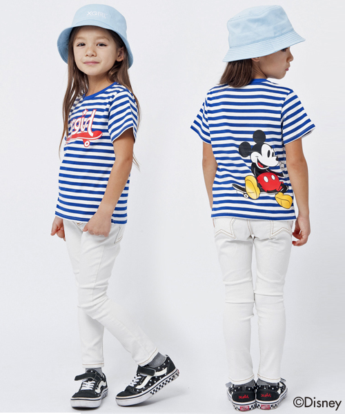 15Winterミッキーシリーズのミッキーとミニーがひとしきりスケートを楽しんだ後デッキの上に座ってチルアウトしている様子をバックプリントしたS/S TEE。ミッキーとミニーの手を合わせると二人でハートを作っている一つの絵に仕上がる。今回は赤ちゃん、お子さん、ママまでがリンクしてるのでセット買いシリーズになること間違いなし★