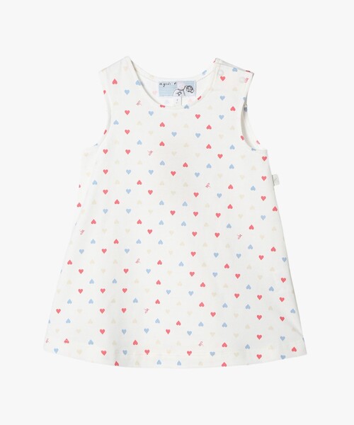 オリジナルのハートの総柄プリントのノースリーブワンピース。 同生地のウェアやヘアバンド、スタイとのセット着用もおすすめです。 ※商品にアテンションカードや品質表示タグが付属している場合、必ずご確認の上、お取り扱いください。 実寸情報 70~80cm(1歳) 肩幅:21cm/バスト:52cm/身丈:41cm/ウエスト:54cm/ヒップ:64cm 80~85cm(18ヶ月) 肩幅:22cm/バスト:57cm/身丈:46cm/ウエスト:61cm/ヒップ:71cm 85~95cm(2歳) 肩幅:23cm/バスト:60cm/身丈:50cm/ウエスト:68cm/ヒップ:78cm