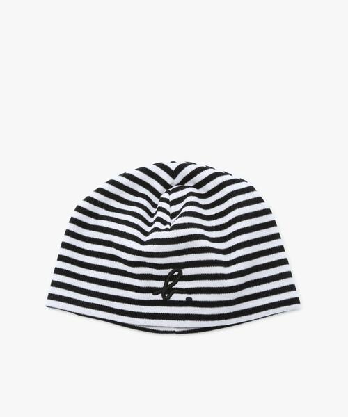 黒×白ボーダーを使用したベビーの帽子。洋服と同じb.刺繍がポイントです。柔らかく、ふくらみ感のある素材がベビーにぴったり。表面はなめらかですべすべしており手触り・肌触りが良く、程よく伸びて伸縮性があり、動きの邪魔をしないため、よく動くベビーにもぴったりの素材です。ゴム編みの生地を重ね合わせるため少し厚みがあり、この厚みにより程よい保温効果もあります。※商品にアテンションカードや品質表示タグが付属している場合、必ずご確認の上、お取り扱いください。原産国:日本組成:綿100%実寸情報Free頭周り:40cm/高さ:14cm (##)