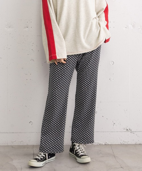 ■Pointカットソーのジャガード素材を、アソートでピックアップしたパンツ。伸縮性があり、快適でとても履きやすい生地感です。それぞれキャッチーなテキスタイルで、コーディネートを華やかに演出します。ヒップ周りはすっきりと、裾に向かって程よく広がるフレアシルエットで、上品さがありながらカジュアルスタイルにもぴったり。チュニックやワンピースの下に合わせたレイヤードスタイルもおすすめです。ウエストはぐるりゴム仕様で、内側の紐によりサイズ感の調整も可能です。両サイドポケット付き。--------------------透け感:なし厚さ:普通伸縮性:あり--------------------※取り扱いについては、商品についている品質表示でご確認ください。◆注意事項◆可能な限り実物に近いカラーにて掲載しておりますが、ご使用のパソコンやスマートフォンなどの端末の環境によって、実際の色味と異なって見える場合がございます。予めご了承ください。サンプルで撮影している商品もございます。その場合、実際の商品とは色味・仕様が異なる場合がございますので、予めご了承ください。POU DOU DOU プードゥドゥひと手間加えた存在感のある「日常着」いつまでもときめきとかわいいを忘れない方への愛着を持てるワードローブ= お気に入り登録がおすすめ!=お得な情報をいち早くお届け致します。アイテムをお気に入り⇒ SALE START / 完売COLOR再入荷 / LAST1点 etc...ブランドをお気に入り⇒新商品 / 再入荷 /クーポン・セール情報 etc...