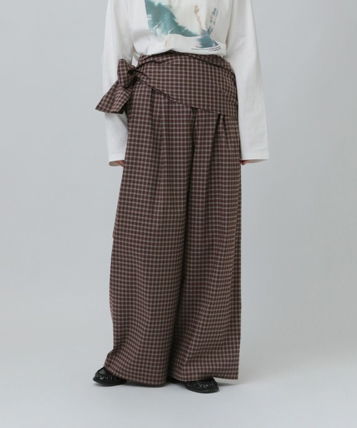 春らしいチェック柄のデザインパンツが登場!【デザイン】ウエストに巻き付けるサッシュベルトのような仕様のパンツです。型結びやリボン結びなど、お好みの結び方で着用することができます!ウエスト位置が高く見えるような仕様にもなるので、スタイルアップが叶います!【スタイリング】・ショート丈のトップスと合わせてウエストデザインを活かしたスタイリングがおすすめです。---------------------------------------------------【気になる商品はお気に入り登録がおすすめ!】・在庫残りわずか・再入荷・セールの情報などの通知を受け取ることができます。気になる商品は♡をクリックして、「お気に入り登録」しましょう!【ショップ・ブランドのお気に入り登録も!】新商品や再入荷、セール、クーポンの配布など、いち早くお得な情報を受け取ることができます。---------------------------------------------------