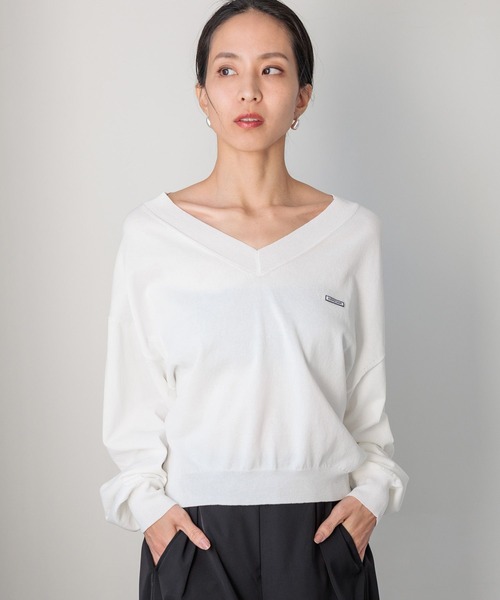 ロゴワッペンがアクセントになったVネックニット ーーー ★おすすめポイント★ [1]気温が上がってからも着まわせる、ドライタッチニット [2]ワッペンロゴがカジュアル感をプラスする脱コンサバのVネック [3]かしこまりすぎないリラックスしたシルエット [4]春アウターにもインしやすい、ハイゲージニット [5]平日も休日も着こなし自由自在 ーーー [fabric] コットン/ナイロンの肌離れの良いドライタッチな素材感が特徴。 天竺編みを採用し、カジュアルになりすぎず綺麗め見えするニットです。 [design] ワイドな身幅とアームホール、ドロップショルダーでリラックスした印象ながら、裾リブでメリハリのあるバランスに仕上げています。 前後差をつけたヘムラインや後ろ裾のスリットもこなれた印象に。 Vネックラインは、デコルテが綺麗に見える抜け感のあるバランス。 合わせるパンツやスカート次第で、着用シーンや印象を変えることが出来る万能春ニット。 [styling] オーバーサイズながら長すぎない丈感と裾リブで腰で留まるデザインなので、ワイドボトムやカーブボトムとの合わせがおすすめです。 さらっと衿を抜いて着るだけで、抜け感のあるスタイリングが完成します。 【HEREIAM】シーズンレス/ドロストレースサテンキャミ(638010)(\8,800税込)を中にレイヤードして、裾からレースをのぞかせるテクニックをプラスすると今年らしいアレンジに。 【おすすめのスタイリングアイテムはこちら】 【HEREIAM】シーズンレス/ドロストレースサテンキャミ(638010) ※屋外での撮影画像は光の加減で実際の商品より明るく見えたり、風合いが異なって見える場合がございます。 商品の色味はスタジオ撮影の画像を参考にして下さい。 ------------------------------------- ≪お買い物をよりお楽しみいただくために≫ ◆商品のお気に入り登録(ハートマークをクリック) 完売カラーの再入荷通知や、完売間近の通知、セールの通知も受けることができます。 ◆ブランドのお気に入り登録 新商品や再入荷など、いち早くブランドのお得な情報を受け取ることができます。 -------------------------------------