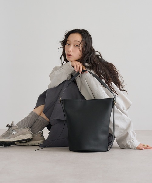 きちんと見えと抜け感を両立する、万能トートバッグ【A4対応・PCも入るサイズ】クタッとしたフォルムに愛着が湧く、ワンハンドルバケツトートバッグ。ハンドルとショルダーの2WAY仕様で、シーンに合わせた持ち方が楽しめます。すっきりとしたバケツ型シルエットでは、コーディネートを選ばず合わせやすい仕上がり。外側にはスマートフォンが収まる便利なポケット付きで、出し入れもスムーズ。ショルダー部分は華奢に仕上げ、女性らしく上品な印象に。PCや書類などA4サイズが収納可能で、見た目以上の収納力があり通勤・通学にも対応します。トレンドに左右されないベーシックなデザインで、長く愛用できるのも魅力です。保管に便利な保存袋付き。-上品なシボ感のある床革を使用-床革は、本革の一部でありながら独自の魅力を持つ特別な素材です。革を加工する際、表面を取り除くことで生まれるこの素材は、上品で落ち着いた艶感が特徴。手に取ると柔らかく、使い込むほどに風合いが深まり、シンプルなデザインにも自然な高級感をプラスします。※本製品はスプリットレザー(床革)を使用しています。摩擦や水濡れにより色落ち・色移りする場合がありますので、淡色の衣類との組み合わせにはご注意ください。※スプリットレザーは湿気や乾燥、高温に弱く、反りや硬化、ひび割れの原因となることがあります。風通しの良い場所で、直射日光・高温多湿を避けて保管してください。※濡れた際はすぐに乾いた柔らかい布で水気を取り、陰干ししてください。ドライヤー等による急速乾燥はお避けください。※表面の汚れは乾いた柔らかい布で軽く拭いてください。革専用のクリーナーは目立たない箇所で試してから使用してください。※保管時は型崩れを防ぐため中に詰め物を入れ、付属の保存袋に入れて保管することをおすすめします。【必ずご確認の上、ご検討ください】※商品画像は撮影時の光や角度、お使いの照明やモニター環境により実物の色味と異なって見える場合がございます。※ご使用の前に、商品についておりますアテンションタグ、洗濯ネームを必ずご確認ください。※商品によっては、表面加工の薬剤や接着剤などのにおいが感じられる場合がございます。においが気になる場合はパッケージから取り出し、しばらく陰干ししてください。※製品洗い、生地洗い加工を施している製品は、加工の段階で縮みや多少の色移り、ホツレ、キズなどが発生し、色落ち具合や仕上がりサイズに個体差がございます。※通販の特性上、到着時には畳みシワがついている場合がございます。【Information】◆《お気に入り登録》がオススメ◆・「商品のお気に入り登録」で再入荷通知や、ラストの通知、セール通知も受け取ることが出来ます。・「ブランドのお気に入り登録」で新商品や再入荷など、お得な情報を受け取ることが出来ます。