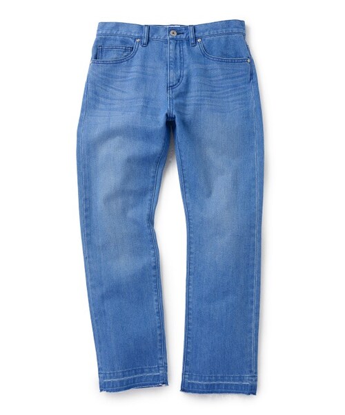 【切れ味抜群の爽やかなスタイリングをプロデュース】裾上げ始末を一度施してから解き、程よくウォッシュをかけた絶妙な風合いのデニムストレートパンツ。すっきりとしたスマートなシルエットがレッグラインを美しく引き立てます。パンプスにもスニーカーにも合わせやすい、程よいレングスで使い勝手のよいアイテムです。