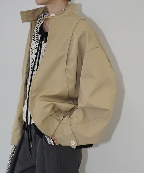 すっきりとしたスタンドネックが印象的なショート丈ブルゾン。ほどよくハリのある素材感とゆとりを持たせたシルエットで、羽織るだけでスタイリングが引き締まります。ワイドパンツやワンピースとも相性がよく、季節の変わり目に頼れる一着です。詳細補足仕様:フロントジップ(ダブルファスナー) / フロントポケットあり / 肩パッドなし / ウエストゴム伸縮性:なし 透け感:なし 光沢:なし裏地:あり 厚さ:普通サイズ感:ややゆったりinstagram→chuclla_official取扱注意事項※サイズは、測定方法と測定者によって多少の誤差がありますのでご了承下さいませ。また体型によって、サイズ感に個人差がございます。(平置き採寸)※商品によってはシワがつきやすく、畳みジワや折りジワなどが強く出る場合がございます。その際は加湿した風呂場に数時間干すか、スチームアイロンでのお手入れをお勧めしております。※生地の素材上、においが気になる場合がございます。その際は陰干しして頂くと、ほとんど感じにくくなります。※レース等の繊細な素材を使用している場合には、お取り扱いにご注意下さい。※デニムを使用した製品は、インディゴ染めをしています。汗や摩擦により移染しやすいので、白色、淡色の組み合わせや重ね着はお避け下さい。※ニット素材を使用した製品は、重みで伸びやすくなりますのでハンガーでの保管はお控えください。※お洗濯の際には、品質表示の指示に従ってください。必要であれば専門店にご相談ください。家庭でご洗濯できる商品に関しては、洗濯専用ネットをご使用の上、個別での洗濯をお勧めいたします。お色物は、色移りする可能性がございます。※着用画像は撮影状況や光によって、多少異なる場合がございますので、置き画像をご確認下さい。※2023年7月1日より、環境に配慮した取り組みの一環として、紙のアテンションタグを廃止しております。