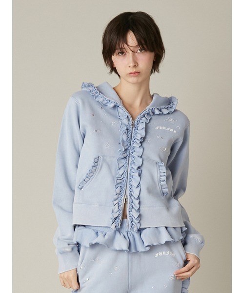 トレンド感のあるコンパクトなシルエットのフード付きパーカー。ハートを中心としたモチーフや、変形ロゴデザイン、フリルで華やかさを施し、存在感のある一枚に仕上げました。フロントは逆開ファスナー仕様で様々な着こなしをお楽しみいただけます。透け感;なし裏地;なし伸縮性;あり光沢感;なし生地の厚さ;普通※照明の関係により、実際よりも色味が違って見える場合があります。またパソコン・スマートフォンなどの環境により、若干製品と画像のカラーが異なる場合もございます。予めご了承ください。商品の色味は、商品単品画像をご参照下さい。 ※商品画像はサンプルのため、色味やサイズ等の仕様に変更がある場合がございますので、予めご了承ください。
