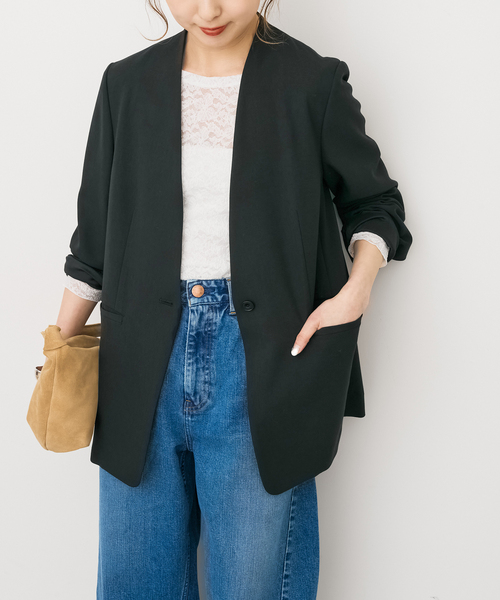 羽織るだけで洗練。しなやかに纏うVカラージャケット。程よいしぼ感と、やわらかく流れるような落ち感が魅力のトロ素材を使用。女性らしさを引き立てながらも、きちんと感を備えた一着です。これまでのハリ感のあるダブルクロスとは一線を画し、今季は軽やかで柔らかな素材感が新鮮な表情を演出。すっきりとしたVカラーが顔まわりをシャープに見せ、オン・オフ問わずスタイリングに品の良さをプラスします。同素材のセットアップ展開で、オケージョンシーンからお仕事スタイルまで幅広く活躍。一枚持っておくと、装いの幅がぐっと広がるジャケットです。▼他にもシリーズがございます。26030200302010 トロストレッチ1タックパンツ※取り扱いについては、商品についている品質表示でご確認ください。※こちらの商品は、Spick & Spanでの取り扱いになります。 直接店舗へお問い合わせの際は Spick & Span店舗へお願い致します。※照明の関係により、実際よりも色味が違って見える場合があります。またパソコン・スマートフォンなどの環境により、若干製品と画像のカラーが異なる場合もございます。※商品の色味は、商品アップ画像をご参照ください。ブラック着用スタッフ:160cm、着用サイズ:38ベージュ着用スタッフ:156cm、着用サイズ:36本体:ドライクリーニング