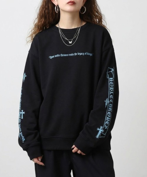 縦クロスバンドプリントと英文ロゴが映えるポンチオーバーサイズトレーナー ■point 縦に走るバンド状のクロスモチーフプリントと胸元の英文テキストが存在感を放ち、ストリートらしい雰囲気を強くまとえる一枚。 ユニセックスで着られるオーバーサイズが魅力。 ■fabric ポンチ素材で、ハリがありつつ柔らかく、シワになりにくい滑らかな肌触りが特徴。 ■silhouette ゆったりとしたオーバーサイズで、肩が落ちるリラックスライン。 ユニセックスで着やすく、レイヤードにも適したバランスの良いシルエット。 ■coordinate OLD ENGLISH LOGOトレーナーの縦プリントを活かすため、アウターにはロング丈のウールチェスターコートを羽織り、ストリートに上品さをミックス。 インナーには薄手のハイネックカットソーを重ねて奥行きを作り、ボトムにはワイドシルエットのカーゴパンツを合わせて抜け感をプラス。 足元はボリュームのあるミドルカットスニーカーで冬らしい重心を作り、バッグにはレザーのショルダーバッグを合わせて大人っぽさを加える。 手元にはメタルバングルを添えて、プリントのクロスモチーフとリンクするアクセントを演出すると、都会的でユニセックスな冬ストリートスタイルが完成。 『OKシーン』 通学・通勤・街歩き・買い物・散歩・旅行・ライブ・フェス・夜遊び・イベント・撮影・友達と外出・ショッピング・冬コーデ・カフェ・デート・クラブ・休日・ストリートスナップ・ワークスペース 【お買いものをお楽しみいただく為の方法】 ★商品のお気に入り登録★ ・完売カラーの再入荷通知や、ラスト1点の通知、セールの通知も受け取ることができます。 ★ブランドのお気に入り登録★ ・新商品や再入荷など、いち早くブランドのお得な情報を受け取ることができます! トレーナー/スウェット/ユニセックス/キッズボーイズ/秋服/冬服/長袖/カジュアル/ストリート/ロゴデザイン/ロゴプリント/スポーツミックス/ファッション/Tシャツ上/トップス/フードなし/ベーシック/ワントーン/通学/普段着/トレンド/ゆったりシルエット/ラグランスリーブ