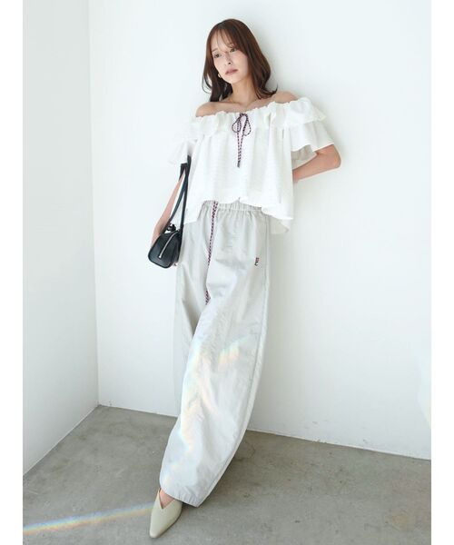 LAGUNAMOON(ラグナムーン)FILA別注コレクション■デザインコメントナイロン素材とサッカー生地の2素材展開で、気分に合わせて選べるデザイントップス。軽さのある素材感で、ふんわりとボリュームのあるシルエットが魅力です。襟元には存在感のある3色の配色コード紐をセット。コードを調節することで、程よい抜け感のあるネックラインから、肩を落として着られるオフショルスタイルまでアレンジが可能です。■スタイリングポイント・同シリーズと合わせてスポーティライクに着るのがおすすめ・パンツでカジュアルにも、スカートと合わせてフェミニンなコーデも〇・コードも調整が可能なので、ジャケットやトレンチとの合わせもおしゃれに決まります■FILA別注アイテムはこちら 032620302901【FILA別注】ドライタッチバイカラーフリルデザインノースリーブニットワンピース032620700701【FILA別注】エアリーナイロンバナナパンツ032621000101【FILA別注】バックリボンロゴキャップ032622800501【FILA別注】ドライタッチバイカラーフリルデザインニットカーディガン---------------------------------------------------透け感:なし裏地:なし生地の厚さ:普通洗濯:-伸縮性:ネックライン部分のみありポケット:なしジップ:なし--------------------------------------------------【 ZOZOTOWNでお買い物を楽しむ便利機能 】♡商品のお気に入り登録完売カラーの再入荷時、ラスト1点の時、セール開始時にお知らせします。予約アイテムが入荷して通常販売になった時もお知らせしてくれます!その他お得な通知も盛りだくさんです。 ♡ブランドのお気に入り登録新商品や再入荷、セール情報など、いち早くブランドのお得な情報を受け取ることができます。ぜひご活用ください!
