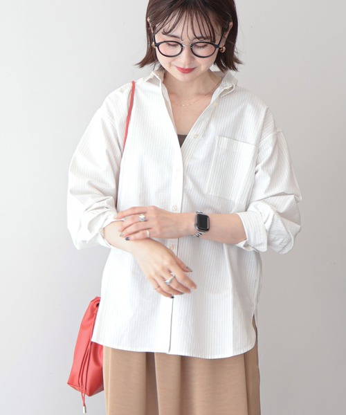 UVカットを施したコットン100%素材で仕立てたシャツ。 オックスフォードのカジュアルさとベーシックなデザインでデイリーからビジネスまでユースフルに活躍するひと品です。 ゆったりとしたサイズ感と前後差を付けたラウンドヘムがちょうどいい抜け感を演出。 使いやすい無地と爽やかなストライプを合わせた豊富なカラー展開で春のワードローブを盛り上げてくれるおすすめの一枚です。 透け感[なし] 生地の厚さ[普通] 光沢感[なし] 伸縮性[なし] 裏地[なし] ポケット[あり] ※カラー:ホワイト系その他5は【ストライプホワイト】です。 ※カラー:ブルー系その他6は【ストライプブルー】です。 ※モデル着用画像は、光の当たり具合で色味が違って見える場合がございます。 ※お使いのモニター環境によって商品の色味が違って見える場合がございます。 ●AMERICAN HOLIC ● (アメリカンホリック) 大人の女性の毎日を軽やかで豊かにするブランド。 カジュアルなのにオシャレ、コーディネートも楽。ONにもOFFにも等身大で楽しむオトナの日常着をテーマに、スタイリッシュかつ自然体を楽しめるカジュアルスタイルを提案します。 ▼ 商品のお気に入り登録がおすすめです ▼ 商品ページ内のハートマークをクリック。完売時の再入荷や、最後の1点の通知、お得なお値下げの際の通知を受ける事ができます。 【お知らせ】ページでも通知が確認できます。