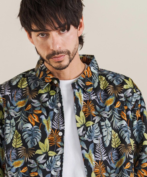 182cm B93cm-W75cm-H92のモデルがMサイズを着用。 ボタニカル柄をプリントしたブロードシャツ。 ゆったりとしたシルエット。 裾はボックスシルエット。 春夏らしいさわやかなボタニカル柄です。 ※着用画像と商品単体画像で色が異なる場合がございます。 ※商品単体画像を実物により近づけております。