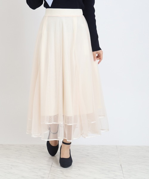 【シーズンレスで活躍○】 チュールの繊細な透け感が女性らしさを引き立てる一枚。 パイピングデザインが全体を引き締め、甘くなりすぎない大人フェミニンな仕上がりに。 ふんわりと広がるシルエットで、動くたびに軽やかな表情を演出。 ウエストはすっきりとした設計で、トップスをインしても綺麗に決まります。 デイリー使いはもちろん、ちょっとしたお出かけやきれいめシーンにも対応。 季節を問わず取り入れやすく、スタイリングの幅が広がる一枚です。 【ASTORIA ODIER(アストリア オディール)】 「女性の”はたらく”が、もっと楽しくなる服」 なりたい自分を叶えるために毎日を大切にしている女性の気持ちに寄り添い、はたらく日も休みの日も、手に入れられる憧れをお客さまと一緒につくっていく。 自分のキレイがみつかるフェミニンカジュアルスタイルを提案します。 ◆《お気に入り登録》でお得な情報を◆ ・「商品のお気に入り登録」 再入荷、ラスト1点、セール情報などの通知も受け取ることができます。 ・「ブランドのお気に入り登録」 新商品や再入荷など、ブランドのお得な情報を受け取ることができます。