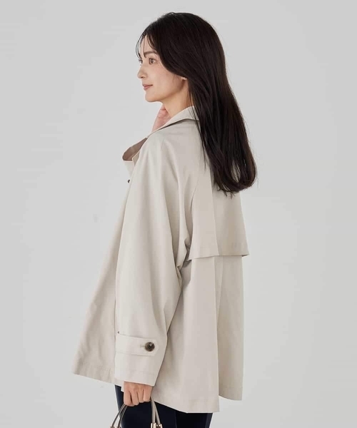 ◆オーバーサイズが今っぽいミディトレンチ◆ 【デザイン】 ・程よいオーバーサイズとサイドスリットが特徴的なトレンチコート ・背中のボリュームを少しカットし、どんなスタイリングにも合わせやすいようアップデートしました ・腰回りが隠れる着丈で、パンツにもスカートにも相性の良いミドル丈 ・Aラインに広がるシルエットがこなれ感を演出 ・カジュアルもキレイ目も合うシルエット ・アームホールにゆとりがあるので季節の変わり目に厚手インナーも着込みやすい ・使い勝手のよいアイボリーとベージュ 【素材】 ・程よいハリ感があるマットな生地感 【コーディネート】 カジュアルスタイルはもちろん、きれいめボトムやワンピースなど、アイテムを問わず着こなせます。 きれいめなブラウスやボトムと合わせて通勤にも活躍します。 -------------------- 着用シーズン 春:◎ 夏:× 秋:◎ 冬:△ -------------------- 透け感:なし 裏地:なし 伸縮性:ややあり 光沢感:なし 生地の厚さ:ふつう -------------------- ≪お気に入り登録機能の使い方≫ ■商品のお気に入り登録(ハートマークをクリック) 再入荷通知や値下げ等、お得なご案内を受けることができます。 -------------------- ※商品画像は、光の当たり具合やパソコンなどの閲覧環境により 実際の色味と異なって見える場合がございます。 商品の色味の目安は商品単体の画像をご参照ください。