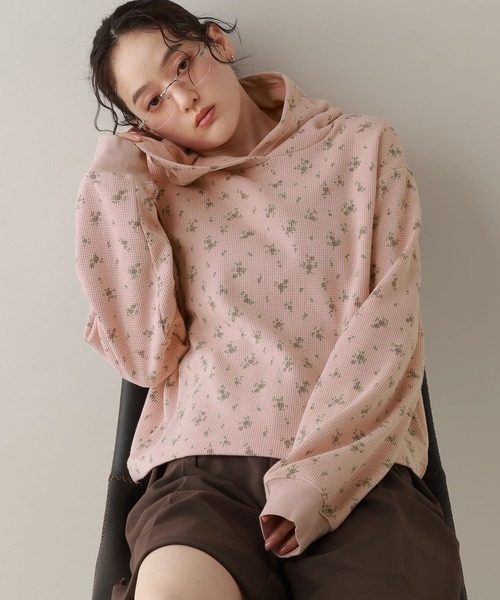 小花柄が目を惹くフェミニンな一着◎■おすすめの着こなし☆パンツスタイルには・・・デニムやワイドパンツと合わせる、ベーシックな着こなしが◎足元はミュールなどを合わせることで、ラフ過ぎない着こなしが叶います。デニムジャケットなどを合わせてメンズライク風にするのもおすすめです。☆スカートスタイルには・・・フレアスカートと合わせる、とことん甘めな着こなしがおすすめです。Iラインスカートなどのタイトなアイテムと合わせることで、クリーンな着こなしも叶います◎ーーー■ポイント着心地の良いワッフル生地で仕上げたトレンドパーカー。全面に広がる小花柄がアクセントになっている一着です。程よくゆとりのある身幅なので、腰回りの体型カバー可能◎ドロップショルダー仕様なので、着るだけで抜け感があり女性らしい印象に。幅広いアイテムと相性が良いので、ロングシーズンお使いいただけること間違いなしです。■素材肌触りが良く、着心地抜群なワッフル生地を使用。柔らかい素材感がやみつきになります。