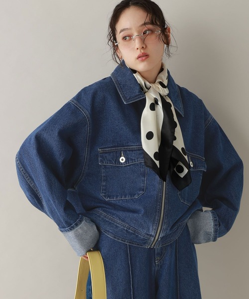 セットアップ対応のこなれデニムブルゾン。■おすすめの着こなし☆セットアップスタイルには・・・同素材を使用したパンツ・スカートとセットアップ可能◎パンツと合わせれば、大人カジュアルな印象で着用いただけます。スカートと合わせると、女性らしい大人見えスタイルが叶います。☆単体使いには・・・フレアスカートやティアードスカートなどの、ボリュームのあるアイテムと合わせるのが◎ボトムスの場合はワイドパンツやスウェットパンツなどと合わせることで、程よくラフな着こなしが叶います。■ポイント万能に着まわせる、デニムジャケットが登場。ベーシックなボディカラーに施された配色ステッチがアクセントになっている一着。大きめのポケットが2つデザインされているのもポイントです。フロント部分はジップ仕様なので、着脱も簡単◎身幅にゆとりがあるので、中に着込んでも楽な着心地に仕上がりました。。単体使いでもセットでも着映える一着です。■素材柔らかく、肌触りの良いデニム生地を使用。着心地の良さにもこだわった一着です。▼同素材を使用したパンツ・スカートとセットアップ着用可能です。・ステッチデザイン/ピンタックデニムパンツ/セットアップ対応商品コード:103045140・ステッチデザイン/フロントスリットデニムスカート/セットアップ対応商品コード:103045988