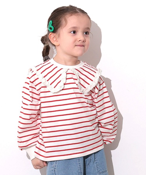 【OCEAN&GROUND】フリル付きセーラー衿がポイントのボーダーTシャツ■デザインマリンムード漂うセーラー衿に、フリルをあしらったガーリーなデザイン。ふんわりとした袖のシルエットが、優しい印象をプラス。着るだけで気分が上がる、とっておきの1枚です♪※モデルが着用している画像は、照明や日光などの撮影時の環境により実物と異なる色味になる場合がございます。商品単体の平置き画像を実物に近いお色味になるよう努めておりますので、お色味のご確認は平置き画像をご参照くださいませ。※お使いのモニター環境によっても実物のお色味と異なって見える場合がございます。予めご理解の程よろしくお願いいたします。ハートマークをポチッ!気になる商品はお気に入り登録をお忘れなく!商品のお気に入り登録をすると...[再入荷][残り1点][セール情報]を受け取れます。MARKEY'Sをお気に入り登録すると...[新商品][再入荷]の情報をいち早く受け取れます。