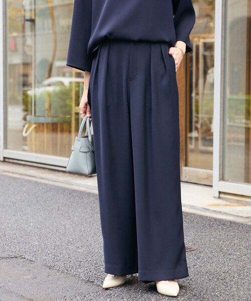 通勤にもフォーマルにも使える上質パンツ●デザイン・ダブルタックで程よく腰回りにゆとりのありながら、脚のラインをすっきりと見せてくれるワイドパンツ・前あき仕様ですが、後ろゴムで履き心地も◎・綺麗見えの素材感で、オケージョンや通勤にもぴったりです・同素材のブラウスとセットアップ着用していただけます・裏無し※同素材でダブルハーフスリーブブラウス(RDZ1061104A0001)もございます。セットアップで着用いただけます。●素材ポリエステル 100%・パウダリーかつドライなタッチでしなやかな風合いのダブルサテン・肌離れのいい快適な着心地で、シワになりにくい素材です洗濯方法:手洗い可透け感:なし裏地:ベージュのみあり伸縮性:ウエスト部分あり生地の厚さ:-光沢:ややありファスナー:ありポケット:あり--------------------------------------------------------------------------------【お買い物をもっと便利に楽しく♪】『♡』をクリックでお気に入り登録✓「商品のお気に入り登録」で・・・ラスト1点や再入荷の通知が届きます。登録して頂いた商品だけが対象となる、あなただけのタイムセールが開催されることも!✓「ブランドのお気に入り登録」で・・・新商品や再入荷など、いち早くブランドのお得な情報を受け取ることができますので、ご登録をおすすめします!--------------------------------------------------------------------------------【注意点】※画像の商品は光の照射や角度、お使いのモニター環境により、 実物と色味が異なる場合がございます。※入荷状況により、お届け予定が前後する場合があります。※お客様への発送が店頭販売より遅れる場合もあります。※追加生産商品は、一部の店舗、通販で販売中の場合がございます。 予めご了承下さい。----------------------------------------------------------------------
