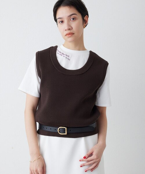【2026SS】 重ね着でも単体でも着回しの効くノースリーブニット ■ミドルゲージのノースリーブニットプルオーバー。 ■首元は少し深めのUネックにして抜け感をプラス。 ■短丈のコンパクトなデザインで、パンツにもスカートにも合わせやすく、ボトムを選ばず着回し可能。 ■ノースリーブで着用するのはもちろん、インナーに袖ありのシャツやカットソーを重ねるのもおすすめ。 【COLOR】 アイボリー:明るく柔らかさのあるアイボリー。 ブラウン:シックな印象をプラスするブラウン。 【STAFF COMMENT】 ■身長160cm|普段サイズ XS~S|着用サイズ F コンパクトなサイズ感でスッキリ着用できます。生地は柔らかくて着やすいです。首元が詰まりすぎず、抜け感もプラスしてくれます! ■身長160cm|普段サイズ S~M|着用サイズ F ベストとしても着用しやすいサイジングやアームホールの作りで、アレンジ次第で様々な着こなしを楽しめます!軽くてとても着やすく、シンプルなのでどんなスタイルにも馴染み、いつものスタイルにプラスしやすいのがポイントです。 ---------------------------------------------------- 透け感:なし 裏地:なし 伸縮性:あり 光沢感:なし ---------------------------------------------------- ― THE PAUSE(ザ ポーズ) ― 流行を自分らしい発想で切り取ってコーディネートを遊ぶ。 色のグラデーション、ヴィンテージ感漂うワークアイテム・・・ ギャラリーのようなクローゼットの中から 組み合わせをデザインするようにファッションを楽しむ。 そんな、自由なライフスタイルをもつ大人の女性にむけて 新しい感覚のカジュアルスタイルを提案します。 【注意事項】 ・画像の商品はサンプルです。実際の商品と仕様、加工が若干異なる場合があります。 また 、パソコンやスマートフォンのモニター環境などにより、色味が違って見える場合があります。 ・店頭及び屋外での撮影画像は、光の当たり具合で色味が違って見える場合があります。 商品の色味は、スタジオ撮影の画像をご参照ください。 ・入荷状況により、お届け予定が前後する場合があります。 ・お客様への発送が店頭販売より遅れる場合があります。 ・追加生産商品は、一部の店舗、通販で販売中の場合があります。 予めご了承下さい。 【気になるアイテムは、「お気に入り」登録を】 ハートマークをクリックしておくことで、スムーズにお買い物が楽しめます。 ・ラスト一点のお知らせ ・再入荷のお知らせ ・SALEのご案内
