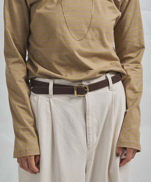 【2026SS】 きれいめにもカジュアルにも合わせやすいレザーベルト ■ホースシューモチーフのバックルがポイントのレザーベルト。 ■程よい厚みがありながら馴染みの良い、国内のタンニン鞣しでつくられている牛革を使用。 ■バックルは国内で丁寧に作られた真鍮製で、本金メッキを贅沢に施したものを使用。 ■ホースシュー(馬蹄)をモチーフにしながら、女性らしさも併せ持つ高級感のあるバックルデザインに。 ■シンプルながらもゴールドのバックルがポイントになり、きれいめにもカジュアルにも合わせやすいアイテム。 【COLOR】 ブラウン:コーディネートに品よく馴染むブラウン。 ブラック:ゴールドバックルとのコントラストが効いたブラック。 ― THE PAUSE(ザ ポーズ) ― 流行を自分らしい発想で切り取ってコーディネートを遊ぶ。 色のグラデーション、ヴィンテージ感漂うワークアイテム・・・ ギャラリーのようなクローゼットの中から 組み合わせをデザインするようにファッションを楽しむ。 そんな、自由なライフスタイルをもつ大人の女性にむけて 新しい感覚のカジュアルスタイルを提案します。 【注意事項】 ・画像の商品はサンプルです。実際の商品と仕様、加工が若干異なる場合があります。 また 、パソコンやスマートフォンのモニター環境などにより、色味が違って見える場合があります。 ・店頭及び屋外での撮影画像は、光の当たり具合で色味が違って見える場合があります。 商品の色味は、スタジオ撮影の画像をご参照ください。 ・入荷状況により、お届け予定が前後する場合があります。 ・お客様への発送が店頭販売より遅れる場合があります。 ・追加生産商品は、一部の店舗、通販で販売中の場合があります。 予めご了承下さい。 【気になるアイテムは、「お気に入り」登録を】 ハートマークをクリックしておくことで、スムーズにお買い物が楽しめます。 ・ラスト一点のお知らせ ・再入荷のお知らせ ・SALEのご案内