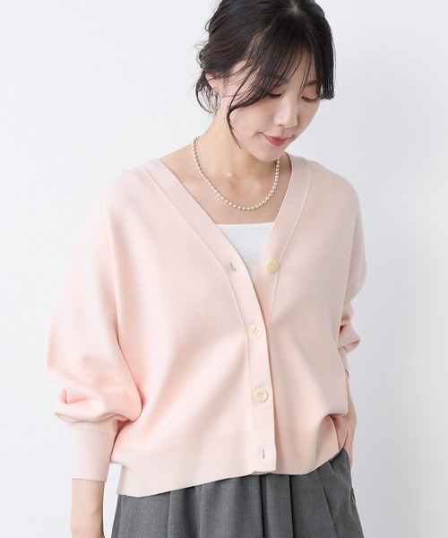ご好評いただいていたミラノリブカーディガンに春カラーVer.の登場です。ゆるっとした身幅に、短めの着丈のミラノリブ編みVネックカーディガン。ゆったりとしたシルエットのVネックカーディガンは、首元をすっきりと見せ、女性らしい抜け感を演出します。広めにとったアームホールで、重ね着もストレスなく楽しめる一枚です。袖口の立体感あるシルエットもポイント。コンパクトな丈感なのでスタイルアップ効果も。季節の変わり目の羽織に便利なアイテムです。スタイリングのアクセントにぴったりな春らしいPINKとL/GRAY、MICA&DEALオリジナルで染めたD/NAVYの3色展開です。【fabric】カットソーのような安定感あるストレッチ糸を使用。スムース編みの目面の詰まった表情が綺麗見えする素材です。※素材の特性上、あたりが出る場合があります。アイロンでふかしたり、お洗濯することで改善されます。--------------------------------------透け感:なし裏地:なし伸縮性:あり光沢感:なし生地の厚さ:普通--------------------------------------水洗い可*詳しくは商品の洗濯表示にてご確認をお願い致します。【coordinate】インナーにシンプルなTシャツやタンクトップを合わせ、ボトムスにストレートやワイドシルエットのデニムパンツを合わせると、こなれ感のある大人のカジュアルスタイルが完成します。センタープレスのパンツやワイドパンツなど、きれいめなボトムスと合わせれば、上品なオフィスカジュアルとして活躍します。フレアスカートやタイトスカートといったロング丈のスカートと合わせると、女性らしく優雅な印象のコーディネートになります。Vネックの首元には、ネックレスや、存在感のあるピアス・イヤリングなどを加えることで、シンプルなコーディネートに華やかさをプラスできます。こちらの商品は同素材でプルオーバーも展開しています。スムースボートネックニットプルオーバー/0126108006※商品画像はできる限り実物の色に近づけるよう徹底しておりますが、お使いのデバイスのモニター設定、お部屋の照明等の閲覧環境により実際の色味と異なって見える場合がございます。※画像の商品はサンプルです。実際の商品と仕様、加工が若干異なる場合があります。予めご了承くださいませ。▼商品のお気に入り登録お気に入りアイテムの値下げ・再入荷・在庫1点などの通知を受け取ることができます。 ▼ブランドのお気に入り登録新商品や再入荷、クーポン配布などのお得な情報を受け取ることができます。