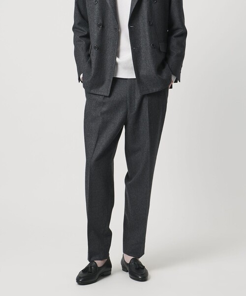 上品な佇まいと快適なはき心地を兼ね備えたハウンドトゥーススラックス■デザインミリタリーパンツをデザインベースにしたハウンドトゥーススラックス。プリーツのある腰回りと裾にかけてのワイドテーパードのシルエットが特徴的です。■仕様プリーツ :1プリーツ(イン)シルエット :ワイドテーパードシルエットポケット :前左右/後左右裏地 :あり■素材スコットランド 「LOVAT」社製の梳毛フランネル素材を使用。アーカイブファブリックを現代的な感性で再構築した「Redpath Flannel」コレクションから厳選した生地を採用しています。■コーディネート単品使いはもちろん、ニットやカットソーなど幅広く組み合わせやすい一本。クラシックなドレスシューズとの組み合わせが好相性です。同素材のダブルジャケット(対象品番:11211103010)とのセットアップがおすすめです。============================透け感:なし伸縮 :なし光沢感:なし============================「SOVEREIGN RELAX MODEL」ノーネクタイでのニットやカットソーとのコーディネートを想定したセットアップモデル。よりゆとりのあるシルエットで、リラックスした着心地です。やや深めの股上と、ワイドテイパードシルエットが特徴です<SOVEREIGN(ソブリン)>現代的で良質なものを追求し、10年後もワードローブにあり続け、社会性と社交性を担保する、信頼できるプロダクトを提案します。丁寧で誠実なもの作りからくる佇まいと、厳選した良質な素材やアイテム1つ1つに適した生産背景、物の特性を活かした雰囲気などを大切にし、こだわりを持ち続ける。クラシックとニューコンテンポラリーを軸にした、現代における超専門十貨店のような品揃えでありたいと考えます。【注意事項】※商品に「取り扱い上の注意書き」、「洗濯表示」がございます場合は、使用前に必ずご確認ください。※商品画像は、光の当たり具合やパソコンなどの閲覧環境により、実際の色味と異なって見える場合がございます。あらかじめご了承ください。※商品の色味の目安は、商品単体の画像をご参照ください。店舗へお問い合わせの際は、全国のUNITED ARROWS各店舗まで下記の品名/品番をお申し付けください。品名:SVS 14 G/PL RLX 1P 品番:11211103011