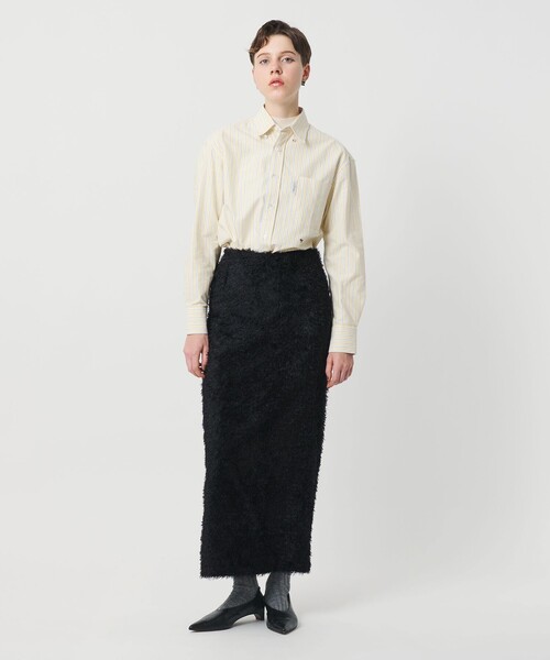 ミニマルなタイトボディに載せた、軽やかなカットジャカードが特徴のロングスカートです。上品な光沢と、ランダムに踊る毛足が存在感を引き立て、エッジの利いたニュアンススタイルを叶えます。バックスタイルはやや身体に沿うカーヴィーなラインを描き、甘すぎない洗練されたムードを演出。シンプルなトップス合わせも映え、ワントーンコーディネートで素材のメリハリを楽しむのもおすすめです。============================裏地:あり透け感:なし伸縮:なし光沢感:ややありケア方法:ドライクリーニング============================【注意事項】※商品に「取り扱い上の注意書き」、「洗濯表示」がございます場合は、使用前に必ずご確認ください。※商品画像は、光の当たり具合やパソコンなどの閲覧環境により、実際の色味と異なって見える場合がございます。あらかじめご了承ください。※商品の色味の目安は、商品単体の画像をご参照ください。店舗へお問い合わせの際は、下記の品名/品番をお申し付けください。品名:HW P/FRNG LNG 品番:16242000004