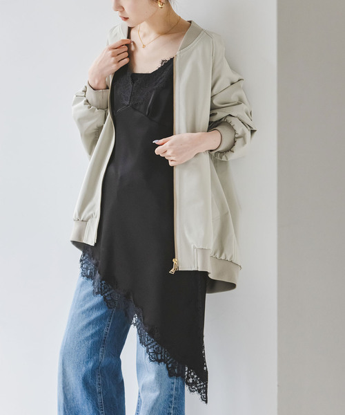 レイヤードスタイルに最適な大胆なアシンメトリーデザインが特徴のキャミソール。キャミソールを縁取るようにレースをあしらったヴィンテージ風のデザインがトレンド感もあり取り入れるだけで旬顔に。土台の素材はトップスやパンツでお馴染みのNOBLE名品シリーズの「ルナサテン」素材を使用。高級感のある人気素材を使用し着心の良さも◎。肩紐はアジャスターで調整できるので身長やコーディネートに合わせてアレンジできます。裾のデザインを活かして上からプルオーバーやアウターを着用すればまるで腰にスカーフを巻いているようなイメージで着用できつつ、キャミソール型なので難しいテクニックいらずで簡単にレイヤードスタイルを楽しめます。●シリーズのご案内 ※セットアップでの着用が可能です。ルナサテンナローフレアタックパンツ(商品番号:26030240105010)ルナサテンナローフレアタックパンツ(商品番号:26030240101010)※品番によりカラー展開が異なります●型違いはこちらルナサテンドレープシャツ(商品番号:26050240102010)**********************透け感:あり(ホワイト)、なし(ブラック)裏地:なし伸縮性:なし光沢感:あり生地の厚さ:普通**********************【スタッフ着用コメント】年齢20代/身長:155cm/体型:やや細身/普段サイズ:34~36/着用サイズ:フリーサイズ感:身体から離れるサイジング。着丈はヒップがすっぽり隠れるほどの長さ。肩紐で長さも調節可能です。素材感:滑らかでほつれにくいサテン素材。着心地:ネックは深めのデザインなので、インナー必須です。**********************※取り扱いについては、商品についている品質表示でご確認ください。※こちらの商品は、NOBLEでの取り扱いになります。直接店舗へお問い合わせの際はNOBLE店舗へお願い致します。※照明の関係により、実際よりも色味が違って見える場合があります。またパソコン・スマートフォンなどの環境により、若干製品と画像のカラーが異なる場合もございます。※商品の色味は、商品アップ画像をご参照ください。ブラック着用スタッフ身長:164cm 着用サイズ:フリーホワイト着用スタッフ身長:155cm 着用サイズ:フリーモデルサイズ:身長:163cm 着用サイズ:フリー本体:手洗い可能