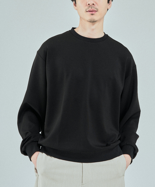 《滑らかなドレープで、ゆったり上品。大人のクルーネックニット》・綿スウェットとは異なる、滑らかなドレープと柔らかな手触り・ゆったりとしたサイズ感で、一枚でもサマになるシルエット・上品なルックスと快適な着心地を両立したクルーネックニット【ご注意】※照明の関係により、実際よりも色味が違って見える場合があります。またパソコン・スマートフォンなどの環境により、若干製品と画像のカラーが異なる場合もございます。※商品の色味は、商品アップ画像をご参照ください。
