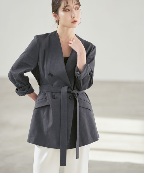 毎年の春夏の定番!麻ストレッチシリーズがシルエットを変えて今シーズンも登場!麻ストレッチの素材はそのままに、今シーズンのテーマに合わせてややリラックス感を加えたジャケットを作成。きちんと感はありつつも、カーディガン感覚で気軽に羽織れるようなシルエットにこだわりました。Vカラーで抜け感を出すことで軽やかさも意識◎。丈はやや長めですが、サイドのスリット&ウエストベルトでニュアンスを出しています。フラップポケットがアクセントになっているのでのっぺり見えないようなこだわりも。またウエスト紐をフロントに持ってきて縛ることで自然にメリハリも生まれるのでお好みでアレンジしていただけます。今年はカラー展開もこだわり、シックな装いを楽しめるグレー、トレンドカラーで一気にワンランクアップを狙えるブラウン、使いやすいベージュの3色展開。毎年沢山の嬉しいお声をいただくセットアップは今年はワンピースと。セットでよりレディームードなスタイルをお楽しみください!●シリーズのご案内麻ストレッチロングジレワンピース(商品番号:26040240502010)**********************透け感:あり(ベージュA)・なし(グレー・ブラウン)裏地:なし伸縮性:なし光沢感:なし生地の厚さ:普通**********************【スタッフ着用コメント】年齢20代/身長:155cm/体型:やや細身/普段サイズ: 34~36 /着用サイズ:36サイズ感:やや身体から離れる大きすぎないサイジング。中にカットソーを着込むほどのゆとりがありました。着丈は長めでヒップがすっぽりと隠れる長さでした。素材感:ドライタッチなリネンな麻素材。着心地:ジャケットですが軽くて快適に着られます。ノーカーラーで顔周りがすっきりと見えるのも嬉しい◎**********************※取り扱いについては、商品についている品質表示でご確認ください。※こちらの商品は、NOBLEでの取り扱いになります。直接店舗へお問い合わせの際はNOBLE店舗へお願い致します。※照明の関係により、実際よりも色味が違って見える場合があります。またパソコン・スマートフォンなどの環境により、若干製品と画像のカラーが異なる場合もございます。※商品の色味は、商品アップ画像をご参照ください。グレー着用スタッフ身長:164cm 着用サイズ:38ブラウン着用スタッフ身長:163cm 着用サイズ:38ベージュA着用スタッフ身長:155cm 着用サイズ:36モデルサイズ:身長:163cm 着用サイズ:38本体:ドライクリーニング