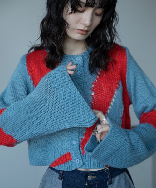 - 2026 VACANCY SPRING COLLECTION - ウェーブボタン×透かし編みの軽やかカーディガン ◆FABRIC ウェーブ状の前立てデザインと、繊細な透かし編みが印象的なニットカーディガン。 動きのある柄表現が、スタイリングにさりげない奥行きと個性をプラスします。 程よくコンパクトな丈感で、ボタンを留めてトップス風にも、羽織としても着用可能◎ 透かし編みならではの軽やかな着心地で、ロングシーズン活躍する一着です。 カラーごとに印象が変わり、コーディネートの主役にもアクセントにも対応。 シンプルなボトムと合わせるだけで、こなれたスタイリングが完成します。 カラーはモノトーンのGRAY シックでモードライクなPURPLE 珍しいオレンジ配色のLIGHTBLUEの3色展開。 ◆STYLE タックパンツやスラックスと合わせて、甘さを抑えた大人バランスに。 インナーにシアートップスやキャミソールを合わせ、透け感を活かした着こなしもオススメ。 デニムやワイドパンツと合わせて、配色デザインを主役にしたシンプルコーデに。 ・・・・・・・・・・・・・・・・・・・・ 透け感:あり 裏地:なし 伸縮性:あり 光沢感:なし 生地の厚さ:薄い ・・・・・・・・・・・・・・・・・・・・ 【お買い物をお楽しみいただく為に】 ▼お気に入り登録をオススメ致します▼ ♡をクリックして下さい。 ・《商品のお気に入り登録》で再入荷通知や、ラスト1点の通知、セールの際の通知も受け取ることができます。 ・《ブランドのお気に入り登録》で新作商品や再入荷など、お得な情報を受け取ることができます! 【ATTENTION】 ※画像の商品はサンプルです。 実際の商品と色味、仕様、加工、サイズ、素材等が若干異なる場合がございます。 ※撮影場所やお使いのモニター環境により若干お色味が異なる場合がございます。 ※製品によっては染料の特性上、湿った状態や汗をかいた状態での長時間の放置、または摩擦により、他のものへ色移りする恐れがありますので、着用時にはご注意下さい。 ※お洗濯は洗濯ネットを使用し、他のものとの混合洗いはお避け下さい。色落ちや色移りの原因となります。 タンブラー乾燥はお避け下さい。 ※風通しがよく、湿気の少ない日の当たらない場所で保管して下さい。 ※また製品加工上、お手元に届く際に匂いが生じる場合がありますが、 ご使用を続けていく事により匂いは軽減されます。