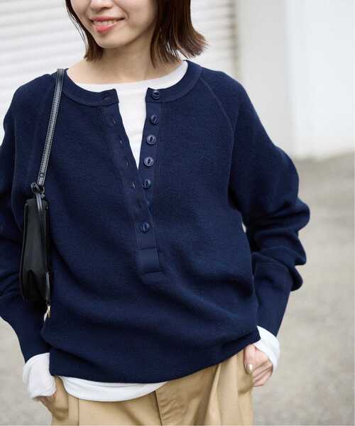 洗濯機使用可能/ボタン開き/前後差あり/リピートアイテム【2026SS】SLOBE IENA大好評につき《ネイビー》《ピンクA》の追加生産が決定しました!加えて新色で《グレーB》《ベージュ》をご用意致しました!※旧品番25070912841010の追加商品です。※若干の仕様変更がある場合もございます。POINT・ビンテージライクなダブルフェイス仕様のヘンリーネックカットソーが登場!【素材の特徴】ダブルフェイス仕様になっており、肌に当たる面が優しく滑らかなので春先に1枚で着用しても着やすい生地感です。ニットライクな肉感のある素材で肌寒い時期からでも着やすいカットソーです。【デザイン】顔回りのポイントになるようなボタンが付いており本体の生地とボタンの色味を統一しました。前後差のある着丈で安心して着られます。古着のような雰囲気になるよう、編み立てのリブや前立て、ステッチワークなど細かいディテールにこだわりました。前後差のあるラウンドした裾回りの仕様です。【コーディネート】ゆとりのあるラグランスリーブなのでゆるっとラフに着用いただくのがおすすめです。イージーボトムスなどにも相性が良いです。※《ネイビー》はWEB限定カラーです。店舗には入荷致しませんのでお問合せの際にはお気を付けください。**********************透け感:なし裏地:なし伸縮性:あり光沢感:なし生地の厚さ:普通**********************【スタッフ着用コメント】《スタッフ名:Yuka》年齢:20代後半/身長:172cm/体型:細身/普段サイズ:M~L/着用サイズ:フリーサイズ感:前後差があり、後ろはヒップが隠れる着丈です。袖が長めで太さもあります。素材感:ダブルフェイスになっていて裏がさらさらしています。表面は編み地が立ったような生地で立体感が少しあります。着心地:リラックスして着られるようなゆとりがあります。**********************※取り扱いについては、商品についている品質表示でご確認ください。こちらの商品は、SLOBE IENAでの取り扱いになります。直接店舗へお問い合わせの際はSLOBE IENA店舗へお願い致します。※照明の関係により、実際よりも色味が違って見える場合があります。またパソコン・スマートフォンなどの環境により、若干製品と画像のカラーが異なる場合もございます。予めご了承ください。※商品の色味は、商品アップ画像をご参照ください。本体:洗濯機洗い(弱)
