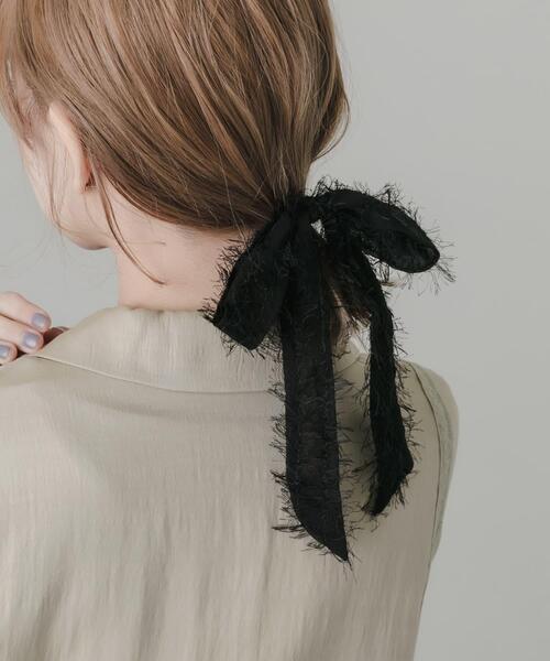 【フリンジが映える大人のリボンヘアーカフ】●軽やかなシアー素材にフリンジのアクセント●甘くなりすぎないブラックリボン●結び目に差し込むだけで決まるフックタイプ透け感のあるシアー生地の縁に、繊細なフリンジ加工を施した表情豊かなヘアーカフ。リボンモチーフでありながら、長めに垂らしたシルエットとシックなブラックカラーが甘さを抑えた大人な雰囲気。動くたびに軽やかに揺れる素材感が、ヘアスタイルにニュアンスと抜け感をプラスします。髪を結んだヘアゴムに裏側のフックを差し込むだけなので、リボンの形を整える手間がなくいつでも綺麗なフォルムをキープできるのも嬉しいポイントです。【2026 Spring/Summer】【26SS】※メッキ製品(特に銀メッキ)は変色しやすいため、こまめなお手入れで防止してください。長期放置やスプレー香料などの同時使用は、特にお避けください。※メッキ製品は、アレルギー体質の方や体調が低下している方など、かぶれることがあります。肌に異常を感じた時はご使用をお止めいただき専門医にご相談ください。※アクセサリーは壊れやすいものです。取り扱いに注意していただき大切にご使用いただけるようお願い申し上げます。総重量 : 約10.5g※商品画像は、光の当たり具合やパソコンなどの閲覧環境により、実際の色味と異なって見える場合がございます。予めご了承ください。※商品の色味の目安は、商品単体の画像をご参照ください。▼お気に入り登録のおすすめ▼お気に入り登録商品は、マイページにて現在の価格情報や在庫状況の確認が可能です。お買い物リストの管理にぜひご利用下さい。-