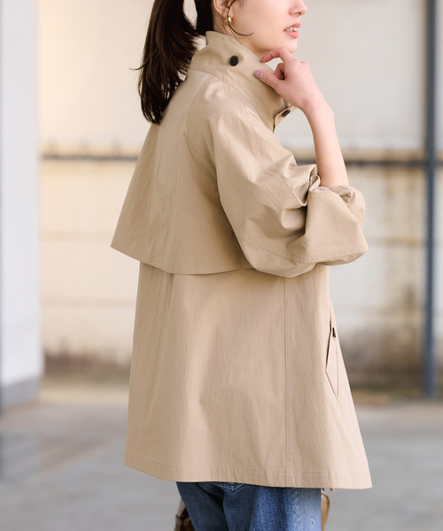 ◆即完売!大人気撥水テントラインコートが再入荷!・旧品番25020220710010・25020220710110の追加品番です。・キャメル(025)は前回よりも赤みが少ない色味に変更しています。・同一商品でも個体差が生じるため、採寸内容に若干の差が生じる場合がございます。機能性を兼ね備えた、自然なテントラインが特徴のコート。経糸に綿、緯糸にスパンナイロンを使用した交織オックス生地で、光沢を抑えた上品な仕上がり。綿サイドのみに起毛をかけることで、柔らかな肌触りと洗いをかけたようなシワ感が生まれ、こなれた雰囲気を演出しています。背裏にはメッシュ素材を使用しており、汗をかいても快適に過ごせるのが嬉しいポイント。撥水加工も施しているのでデイリーユースに最適です。スタンドカラーは高さを出し衿付け位置を低めに設定することで、顔まわりをすっきりと見せ、前を開けて着るのもおすすめ。**********************透け感:なし裏地:背裏のみあり伸縮性:なし光沢感:なし生地の厚さ:普通**********************※取り扱いについては、商品についている品質表示でご確認ください。※こちらの商品は、FRAMeWORK での取り扱いになります。直接店舗へお問い合わせの際は FRAMeWORK 店舗へお願い致します。※照明の関係により、実際よりも色味が違って見える場合があります。またパソコン・スマートフォンなどの環境により、若干製品と画像のカラーが異なる場合もございます。予めご了承の上ご注文ください。※商品の色味は、商品アップ画像をご参照ください。本体:ドライクリーニング