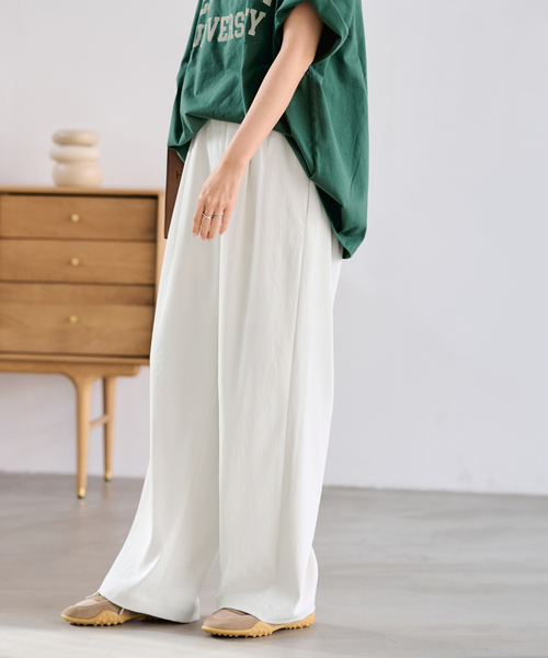 ◆即完売!大人気リラックスパンツが新色を携えて再入荷!・旧品番25030220601010・25030220601120・25030220601220・25030220612030の追加品番です。・同一商品でも個体差が生じるため、採寸内容に若干の差が生じる場合がございます。大人のためのリラックスイージーパンツ。つや消しした繊維で織り上げた生地で、透けにくく安心感のある穿き心地。ふくらみのある風合いとシワ加工が、ナチュラルでこなれた印象を演出します。リラックス感漂うイージーパンツながら、タックをとることで腰まわりはすっきり見えるように。FRAMeWORKオリジナルカラーのベージュは、ワードローブに加えていただきたいおすすめカラーです。**********************透け感:ホワイトAのみあり裏地:ホワイトAのみあり伸縮性:あり光沢感:なし生地の厚さ:普通**********************※ホワイトのみ裏地がつきます。素材について:ポリエステル100%※取り扱いについては、商品についている品質表示でご確認ください。※こちらの商品は、FRAMeWORK での取り扱いになります。直接店舗へお問い合わせの際は FRAMeWORK 店舗へお願い致します。※照明の関係により、実際よりも色味が違って見える場合があります。またパソコン・スマートフォンなどの環境により、若干製品と画像のカラーが異なる場合もございます。予めご了承の上ご注文ください。※商品の色味は、商品アップ画像をご参照ください。本体:手洗い可能