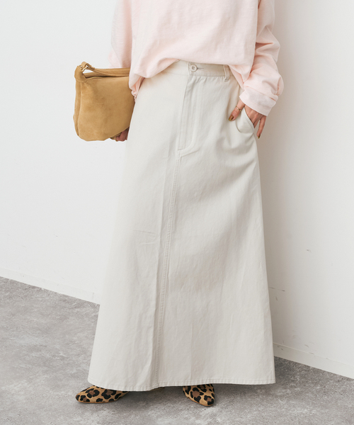 やわらかなフェード感が大人カジュアルな印象を与える、ウォッシュドツイル素材のナロースカート。緩やかなAラインシルエットで、程よい落ち感があり、体のラインを拾いにくいサイジングに仕上げています。すっきりとした印象ながら、動きやすさも兼ね備えた一枚。通年着用しやすい素材感で、トップス次第でシーズンレスに活躍します。カジュアルからきれいめまで、幅広いスタイリングに取り入れやすいアイテムです。※取り扱いについては、商品についている品質表示でご確認ください。※こちらの商品は、Spick & Spanでの取り扱いになります。 直接店舗へお問い合わせの際は Spick & Span店舗へお願いいたします。※照明の関係により、実際よりも色味が違って見える場合があります。またパソコン・スマートフォンなどの環境により、若干製品と画像のカラーが異なる場合もございます。※商品の色味は、商品アップ画像をご参照ください。本体:手洗い可能
