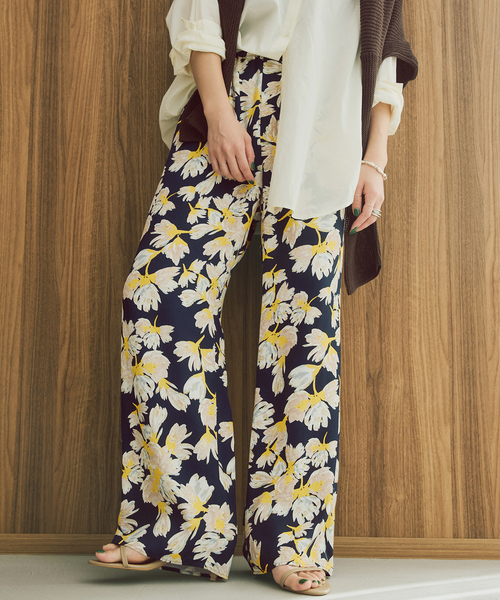 春気分をひと足先にまとえる、華やぎフローラルパンツ。 繊細な花柄が軽やかに映え、穿くだけでコーデが完成する主役級アイテムです。 細見えにこだわったすっきりシルエットで、Tシャツやニットに合わせるだけでスタイルアップが叶うのも魅力。 リラックス感がありながらも、上品に仕上がる“使える一本”です。 ********************** 透け感:ややあり 裏地:なし(ホワイトベースのみペチパンツ付き) 伸縮性:なし 光沢感:なし 生地の厚さ:普通 ********************** 【スタッフ着用コメント】 《スタッフS》 20代後半/身長:158cm/普通/普段サイズ:S/着用サイズ:36 サイズ感:身体のラインを拾わない程よくゆとりのあるシルエット。 ウエストはゴム仕様+紐で調整ができ、着丈は少し地面に着くくらいの長さでした。 素材感:ドレープ感のある柔らかくて軽やかな素材。 着心地:裏地がなくさらりと穿けるので、冬以外の長いシーズンで着用できそうです。 ********************** ※こちらの商品はカラーによって組成が異なり、ホワイトベースのみペチコートが付属しております。 ネイビーベース本体:レーヨン100% ホワイトベース本体:レーヨン100%、ペチコートパンツ:ポリエステル100% ※取り扱いについては、商品についている品質表示でご確認ください。 ※こちらの商品は、Spick & Spanでの取り扱いになります。 直接店舗へお問い合わせの際は Spick & Span店舗へお願い致します。 ※照明の関係により、実際よりも色味が違って見える場合があります。 またパソコン・スマートフォンなどの環境により、若干製品と画像のカラーが異なる場合もございます。 ※商品の色味は、商品アップ画像をご参照ください。 ホワイトベース着用スタッフ:160cm 着用サイズ:36 ネイビーベース着用スタッフ:160cm 着用サイズ:38 ホワイトベース詳細着用スタッフ:163cm 着用サイズ:36 ネイビーベース詳細着用スタッフ:163cm 着用サイズ:38 本体:手洗い可能, ペチコートパンツ:手洗い可能