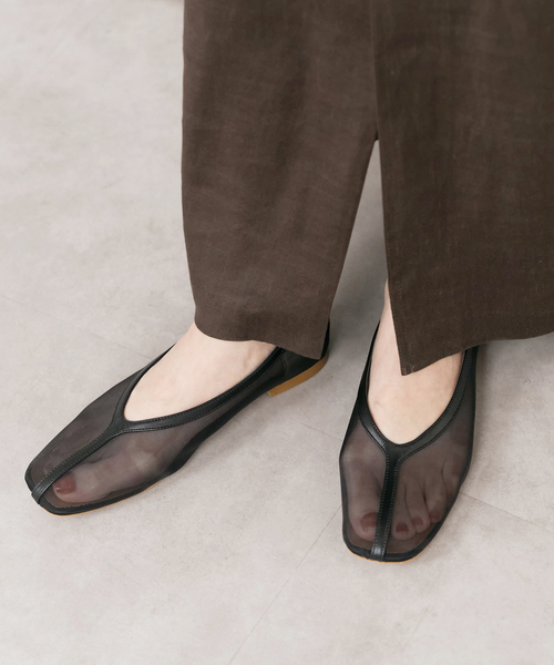 ※メーカー型番:SS5C-1448※カラーについて弊社販売カラー名:メーカーカラー名ブラック(001):BLACKキャメル(025):CAMEL※サイズについて弊社販売サイズ名:メーカーサイズ名36(360):3637(370):3738(380):38旬なスタイルへ導いてくれるトレンドライクなチュール素材のシューズ。軽やかな印象にしてくれる、透け感がかわいらしい一足。さり気ないスクエアトゥで上品な印象に。チュール素材は柔らかくて軽く、素肌に履いても快適です。サンダルだとまだ早い時期からも取り入れやすく、春~秋まで活躍。指先がチュールからのぞくので、ネイルを楽しむのもおすすめです。※取り扱いについては、商品についている品質表示でご確認ください。※こちらの商品は、Spick & Spanでの取り扱いになります。 直接店舗へお問い合わせの際は Spick & Span店舗へお願いいたします。※照明の関係により、実際よりも色味が違って見える場合があります。またパソコン・スマートフォンなどの環境により、若干製品と画像のカラーが異なる場合もございます。※商品の色味は、商品アップ画像をご参照ください。
