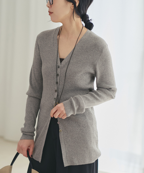 ※◆大人気"floche rib カーディガン"に、新色の《グレー》《ナチュラル》が登場!着丈を長めにアップデートした、程よいフィット感が女性らしいニットカーディガン。綿レーヨンにシルクを加えた滑らかな肌触りが魅力。中央に寄せた釦ディティールがポイントで、一枚着としてラフに着るだけでもこなれた印象に。身体のラインを拾いすぎない、程よく緩さのある安心感のある着心地も嬉しいポイント。シンプルなデザインでデイリーユースに活躍する万能アイテムです。**********************透け感:なし裏地:なし伸縮性:あり光沢感:なし生地の厚さ:普通**********************※旧品番25080922705010の追加品番です。(原価の高騰により価格が変更しております。)着丈のみ長めにリニューアルしております。※旧品番25080922705010の新色カラーとなります。※取り扱いについては、商品についている品質表示でご確認ください。※ 店頭及び屋内外での撮影画像は、光の当たり具合で色味が違って見える場合があります。商品の色味は、商品アップ画像をご参照ください。また、お客様のお使いのPCのモニター環境などにより色味が違って見える場合があります。予めご了承の上ご注文ください。本体:手洗い可能