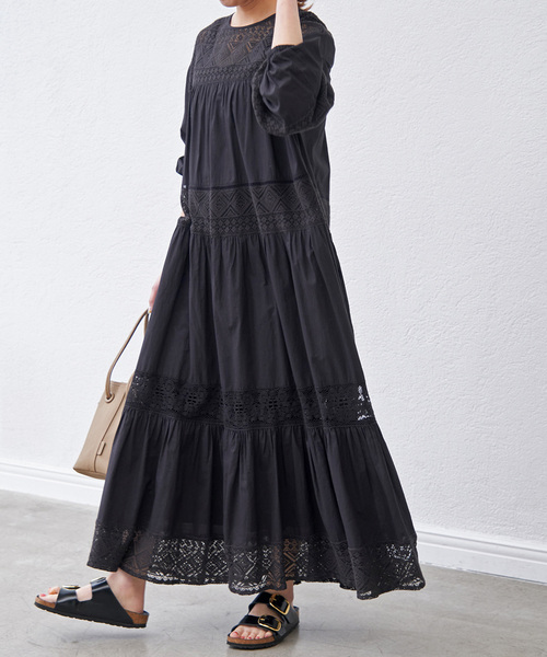 新色ブラウンを加えて再登場!人気のHYU レースギャザーワンピースが、大好評につき追加決定。・こちらの商品は 24040200901020、25040200900020、25040200900120 追加商品です。・ブラックはリピート。ブラウンは新色です。・前回品番とレース部分に混率に変更が生じる場合がございますが、見た目や風合いに大きな違いはございません。・追加生産商品は、一部の店舗や通販で販売されている場合がございます。あらかじめご了承ください。・同一商品でも個体差により、採寸サイズに若干の差が生じる場合がございます。・レビュー内容には、品番の異なる同商品のレビューが含まれている場合があり、現在展開していないカラーやサイズの内容が含まれることがございます。軽やかな生地に数種類の繊細なレースを大胆に組み合わせたデザイン。刺繍が美しく、気取らずに着られるリラクシーなワンピース。軽やかで程よく透け感のあるコットン材を使用することで、エアリーな表情が際立つ一枚。長袖でも涼しく着られ、袖口はゴム入りでボリュームスリーブにもアレンジ可能。レース部分は伸縮性があり、動きやすくなっています。そして、前後ろ2WAYでの着用も可能です。ペチコート付きなのでさらっと1枚ではもちろん、パンツをレイヤードさせてもサマになるアイテムです。【HYU / ヒュー】風になびくたびに生まれる、リラックス感と優雅さ。上品で洗練された佇まいを大切に、2024 Summer Collectionよりデビュー。風に包まれるような軽やかさと、自然体でいられる心地よさを纏う服。素材の表情や動きにこだわり、日常にそっと溶け込みながらも、着る人の美しさを引き立てます。**********************透け感:ややあり裏地:ペチコートあり伸縮性:なし光沢感:なし生地の厚さ:薄手**********************【スタッフ着用コメント】《スタッフS》20代後半/身長:156cm/普通/普段サイズ:S/着用サイズ:フリーサイズ感:身体のラインを拾わないゆとりのあるサイズ感。素材感:夏にも着られそうな、さらりとした軽やかな生地感。ややハリ感があるので、ふんわりとしたシルエットをキープしてくれます。着心地:アンティーク調なので大人も着やすいレースデザインです。透け感を活かして、デニムなどをレイヤードするのもおすすめ。**********************※取り扱いについては、商品についている品質表示でご確認ください。※こちらの商品は、Spick & Spanでの取り扱いになります。 直接店舗へお問い合わせの際は Spick & Span店舗へお願い致します。※照明の関係により、実際よりも色味が違って見える場合があります。またパソコン・スマートフォンなどの環境により、若干製品と画像のカラーが異なる場合もございます。※商品の色味は、商品アップ画像をご参照ください。ブラック着用スタッフ:160cm 着用サイズ:フリーブラウン着用スタッフ:158cm 着用サイズ:フリーブラック詳細着用スタッフ:162cm 着用サイズ:フリーブラウン詳細着用スタッフ:163cm 着用サイズ:フリー本体:洗濯機洗い(弱), ペチコート:洗濯機洗い(弱)