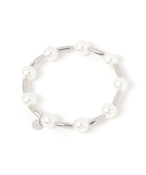 手元を華やかに演出パール調とメタルパーツのコンビデザインが印象的なブレスレット。程よいボリューム感のあるシルエットで、手元のアクセントにぴったり。留め具がないため、忙しい朝でもさっと着用していただけます。