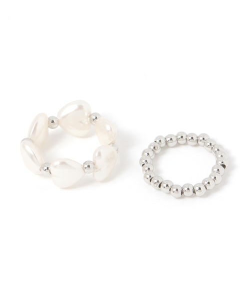 大人カジュアルなデイリーアクセパール調のハートモチーフとメタルビーズのコンビデザインが印象的なリング2個セット。程よいボリューム感で、メリハリのある手元に仕上がります。キレイめからカジュアルまで、幅広いコーディネートと相性抜群です。
