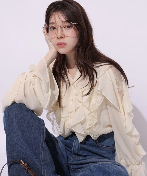 ひらりとしたレースフリルが表情感を演出するブラウス。 首元にはV字の切り込みを施しており、さりげない抜け感をプラスします。 カラーによって印象の変化を楽しめるのもポイント。 スカートやデニムなど、様々なボトムスと相性の良いアイテムです。 【ご注意】 ※撮影照明の関係により、実際の商品と色味が異なって見える場合がございます。 また、パソコン・スマートフォンなどの環境により、製品と画像のカラーが異なる場合もございます。 予めご了承ください。 ※商品画像はサンプルのため、色味やサイズ等の仕様に変更がある場合がございますので、予めご了承ください。
