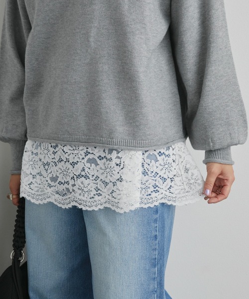 裾のレース切り替えが華やかなアクセントになるカットソー【point】・シンプルなトップスのインナーに重ねるだけでコーディネートのアクセントに・寒い時期の重ね着にも春先の軽装にもぴったりなロンTデザイン・ワードローブに一枚あると頼れるインナー・シンプルなロンTには抵抗のある方にもオススメ【fabric】・柔らかく肌なじみの良いカットソー・手洗い可能透け感:あり裏地:なし伸縮性:あり光沢感:なし生地の厚さ:普通【注意事項】・画像の商品はサンプルです。実際の商品と仕様、加工が若干異なる場合があります。・サイズ表記はあくまで目安となります。・取り扱いについては、商品についている品質表示でご確認ください。・照明の関係により、実際より明るく見える場合がございます。またパソコンなどの環境により、製品と画像のカラーが若干異なる場合がございますので、予めご了承くださいませ。■お気に入り登録がオススメです!■《商品のお気に入り登録》カラー・サイズ選択の横の「♡」をクリックで簡単に登録できます完売カラーの再入荷や在庫が1点になったとき、セールになったときに通知をお届けします《ブランドのお気に入り登録》ページ上部のブランド名の「♡ お気に入りブランドに追加」をクリックで簡単に登録できます新商品の情報やイベントなどお得な情報をいち早くお届けします是非、ご登録お願いします♪