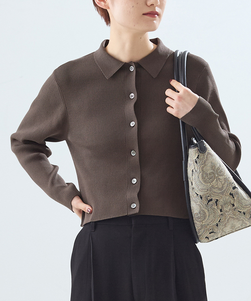 【2026 SS】JOURNAL STANDARD L'ESSAGE◆26SS 新作カーディガンがお目見え大人の女性にピッタリな襟付きのカーディガンはコンパクトなクロップド丈がポイント。フロントボタンの開け閉めでスタイリングの幅が広がります。ワイドパンツや、ロングスカートなどお手持ちのワードローブに取り入れるだけで一気に春らしい雰囲気に。**********************透け感:なし(イエローはややあり)裏地:なし伸縮性:多少あり光沢感:なし生地の厚さ:普通**********************【スタッフ着用コメント】《スタッフI》年齢:20代後半/身長:166cm/着用サイズ:FREEサイズ感:着丈はコンパクトですがゆったりしていて体のラインを拾いにくいです。素材感:さらっとした触り心地のリブニット着心地:軽くて羽織りやすいです。ボトムスを選ばないシンプルさが使いやすそうです。※あくまでも個人の感想です。**********************※取り扱いについては、商品についている品質表示でご確認ください。※カラーによって取り扱い方法が異なります。※照明の関係により、実際よりも色味が違って見える場合があります。またパソコン・スマートフォンなどの環境により、若干製品と画像のカラーが異なる場合もございます。※商品の色味は、商品アップ画像をご参照ください。本体:手洗い可能