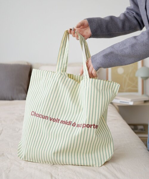 持つだけで気分が上がる、ストライプロゴトートバッグ爽やかなストライプ柄にキャッチーなロゴが映えるトートバッグ。A4ファイルやノートパソコンなどがすっぽりと収まる大容量サイズで、通勤・通学にも最適です。12cmのしっかりとしたマチがあるのも嬉しいポイント◎内側には裏地が付いているので、中身が見える心配もなく、荷物をきれいに整理できます。普段使いのメインバッグとしてはもちろん、サブバッグやエコバッグ、お子様とのお出かけに便利なマザーズバッグとしてなど、様々なシーンで大活躍間違いなし!使わないときはコンパクトに折りたたんで、メインバッグに忍ばせておくことも可能です。《容量の目安》・600mlペットボトル・折りたたみ傘(約18cm)・ノートパソコン・A4サイズのノートやファイル・手帳(B6サイズ)・長財布・キーケース・ポーチ・ハンカチタオル・ワイヤレスイヤフォン・携帯《ポケット》内装ポケット:オープンポケット×1【カラー表記について】システム上の都合により、一部カラー名がサイト表記と異なる場合がございます。【入荷時期について】入荷日ごとに販売数量が決まっているため、オンラインでは完売後に次期納期の数量にて予約販売を行っております。店舗入荷アイテムは、店舗入荷時期と予約商品のお届け時期が異なる場合がございますので、予めご了承ください。※追加入荷のある商品もございますので、詳しい店舗入荷時期に関しましてはお近くの店舗へお問い合わせください。※店舗の在庫状況に関しましては、こちらのページに記載されている「店舗在庫」から確認にしていただけます。「在庫あり」の表記でも、お取り置き分などでお客様に販売できない場合がございます。※予約商品でも、店舗では追加がない場合もございます。ご了承ください。※初回予約商品でも配送処理が発生するため、店舗より遅れてのお届けとなる場合がございます。