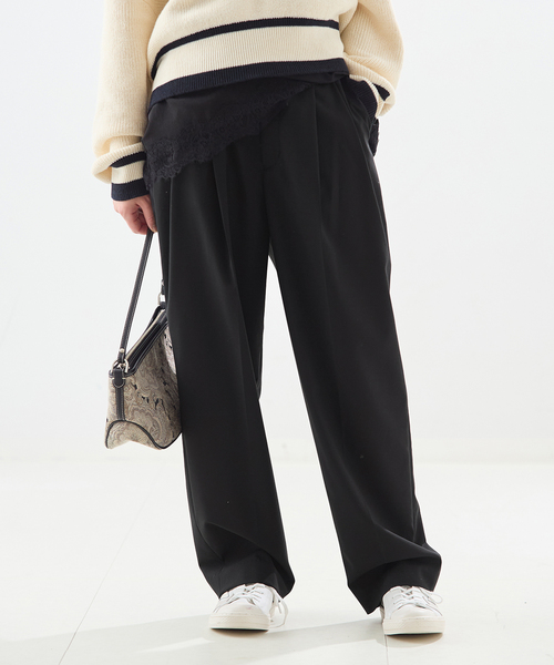 【2025 AW】JOURNAL STANDARD L'ESSAGE「洗練されたシルエットで、毎日のスタイルに上質感を」程よくゆとりのあるテーパードが、脚をすっきりと見せながら快適な穿き心地を実現。センタープレスがきちんと感を演出し、オフィスから休日まで幅広く活躍します。どんなトップスとも相性抜群。ニットやブラウスと合わせれば、上品で大人らしいコーディネートが完成します。シンプルながらも計算されたデザインで、長く愛用できる一本です。※カラーについて《ネイビー》はストライプ柄です。※素材についてカラーによって素材が異なります。ブラック、グレー 本体:ポリエステル66%、レーヨン30%、ポリウレタン4%ネイビー 本体:ポリエステル99%、レーヨン1%**********************透け感:なし裏地:なし伸縮性:ややあり(ネイビーはなし)光沢感:なし生地の厚さ:普通**********************【スタッフ着用コメント】《スタッフ K》年齢:20代後半/身長:167cm/着用サイズ:38サイズ感:ゆとりあるサイズ感でした。レングスは38が丁度よかったです。素材感:さらっとしたドライタッチな素材。着心地:きちんと感も出せるのでON OFFどちらでも着回しがききそうです。※あくまでも個人の感想です。**********************※取り扱いについては、商品についている品質表示でご確認ください。※照明の関係により、実際よりも色味が違って見える場合があります。またパソコン・スマートフォンなどの環境により、若干製品と画像のカラーが異なる場合もございます。※商品の色味は、商品アップ画像をご参照ください。本体:手洗い可能