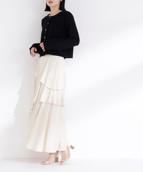 <petit size>通常のSサイズやMサイズから着丈などの長さを短くリサイズし、150cm Aroundの低身長さんにもバランスよく着用いただけるサイズに仕上げています。<お出かけ・デイリーにおすすめ>サテン楊柳素材で仕立てた、表情豊かなティアードスカート。アシンメトリーなデザインが動きを出し、スタイリングのアクセントに。後ろウエストはゴム仕様でリラックスしたはき心地です。ウエストのバイカラーラインが全体を引き締めるポイントに。上品でデザイン性のある一枚です。<素材>上品な光沢と繊細なシボ感が特徴のサテン楊柳素材を使用。しなやかで落ち感があり、動くたびに美しく揺れる素材です。<詳細>仕様・左ファスナー裏地・あり透け感・なし / 光沢・なし / 伸縮性・なし生地の厚さ・普通※モデルの着用画像の場合、光の当たり具合により、実際の色味と異なって見えることがございます。色味は、商品単体の画像をご参照ください。※ウエスト切り替え位置下から裾までのスカート丈はMで85cm、PSで80cmになります【ZOZOでのお買い物をもっと楽しむために!】■ブランド・ショップのお気に入り登録・いち早く新作アイテムや限定クーポンなどのお得な情報を受け取ることができます!■商品のお気に入り登録・完売商品の再入荷通知や、残り1点の通知、各種セール通知も受け取ることができ、よりお得にお買い物頂けるチャンスがあります!