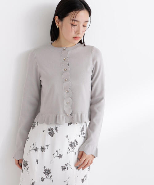 <お出かけ・デイリーにおすすめ> 上品な輝きを放つメタルボタンとフェミニンなフリルをあしらったカーディガン。羽織るだけでコーディネートに華やかさをプラスし、シンプルな装いも一気に旬顔に見せてくれます。程よい厚みとやわらかな肌触りで、季節の変わり目にもおすすめです。 <素材> 柔らかい肌触りのキレイめな総針編みニットです。 <詳細> 仕様・前ボタン 裏地・なし 透け感・なし / 光沢・なし / 伸縮性・あり 生地の厚さ・普通 ※モデルの着用画像の場合、光の当たり具合により、実際の色味と異なって見えることがございます。色味は、商品単体の画像をご参照ください。 【ZOZOでのお買い物をもっと楽しむために!】 ■ブランド・ショップのお気に入り登録 ・いち早く新作アイテムや限定クーポンなどのお得な情報を受け取ることができます! ■商品のお気に入り登録 ・完売商品の再入荷通知や、残り1点の通知、各種セール通知も受け取ることができ、よりお得にお買い物頂けるチャンスがあります!